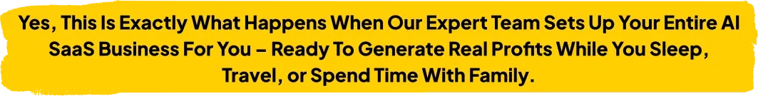 Let Our Team Do The Heavy Lifting While You Enjoy Total Freedom. Whether You're Traveling, Relaxing, Or Spending Time With Loved Ones—Your AI SaaS Business Keeps Running And Earning For You.